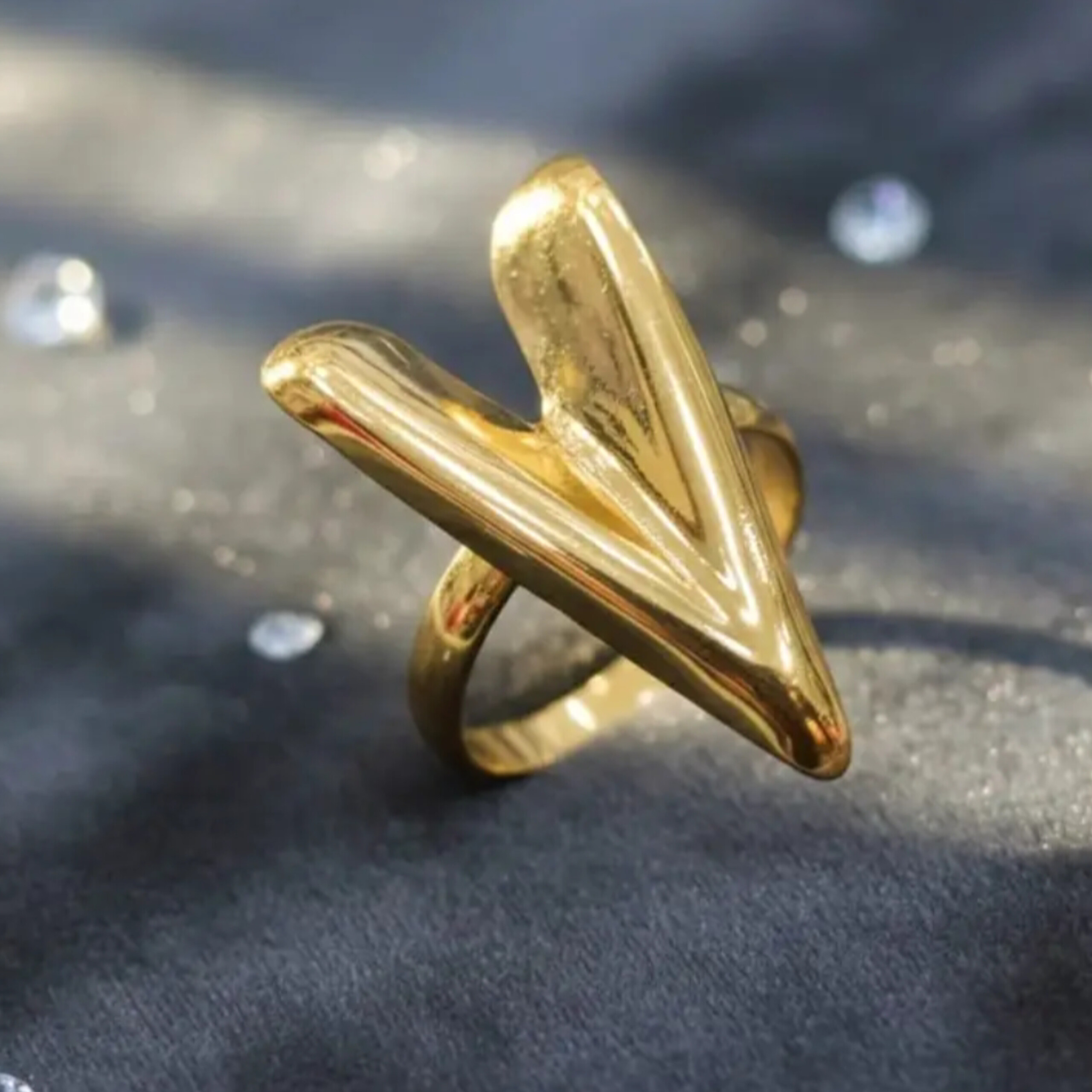 Beautiful big heart Anti tarnish Golden Ring