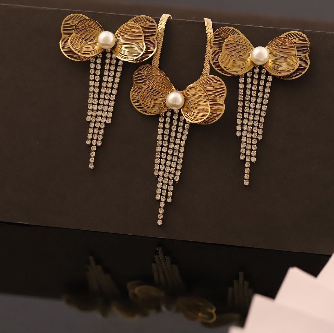 Be the first to review “Statement Bow Earrings Chain Pendant Set”